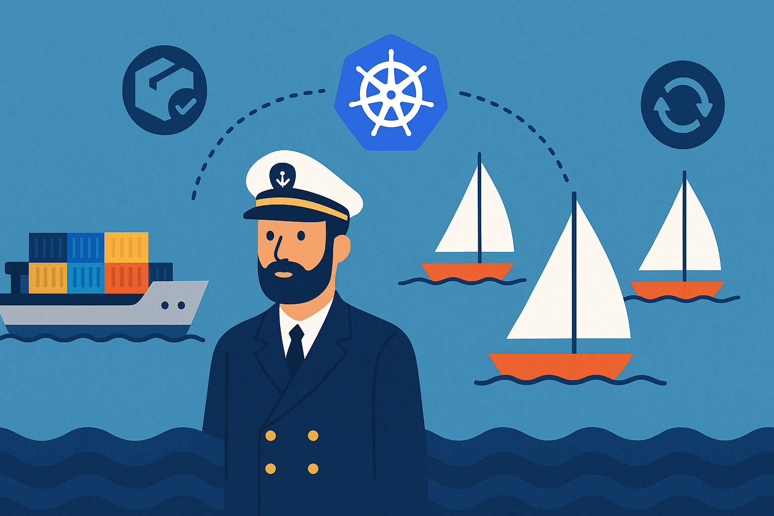 Kubernetes is the super‑smart captain—placing containers on the right ships, watching the voyage, and correcting course automatically.