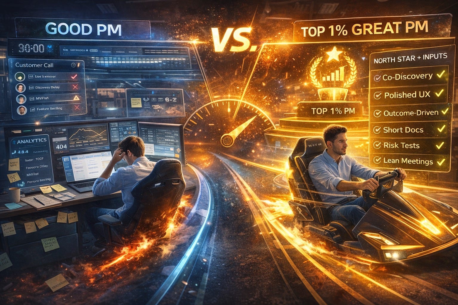 If “Product Manager” were a video game, a good PM plays on Normal: ships features, keeps the trains on time, and can recite the roadmap in their sleep. A great PM plays on Nightmare‑Ironman‑No‑Checkpoints and still makes it look easy. They bend ambiguity into outcomes, elevate the team’s thinking, and somehow have customers quoting their product back to them.